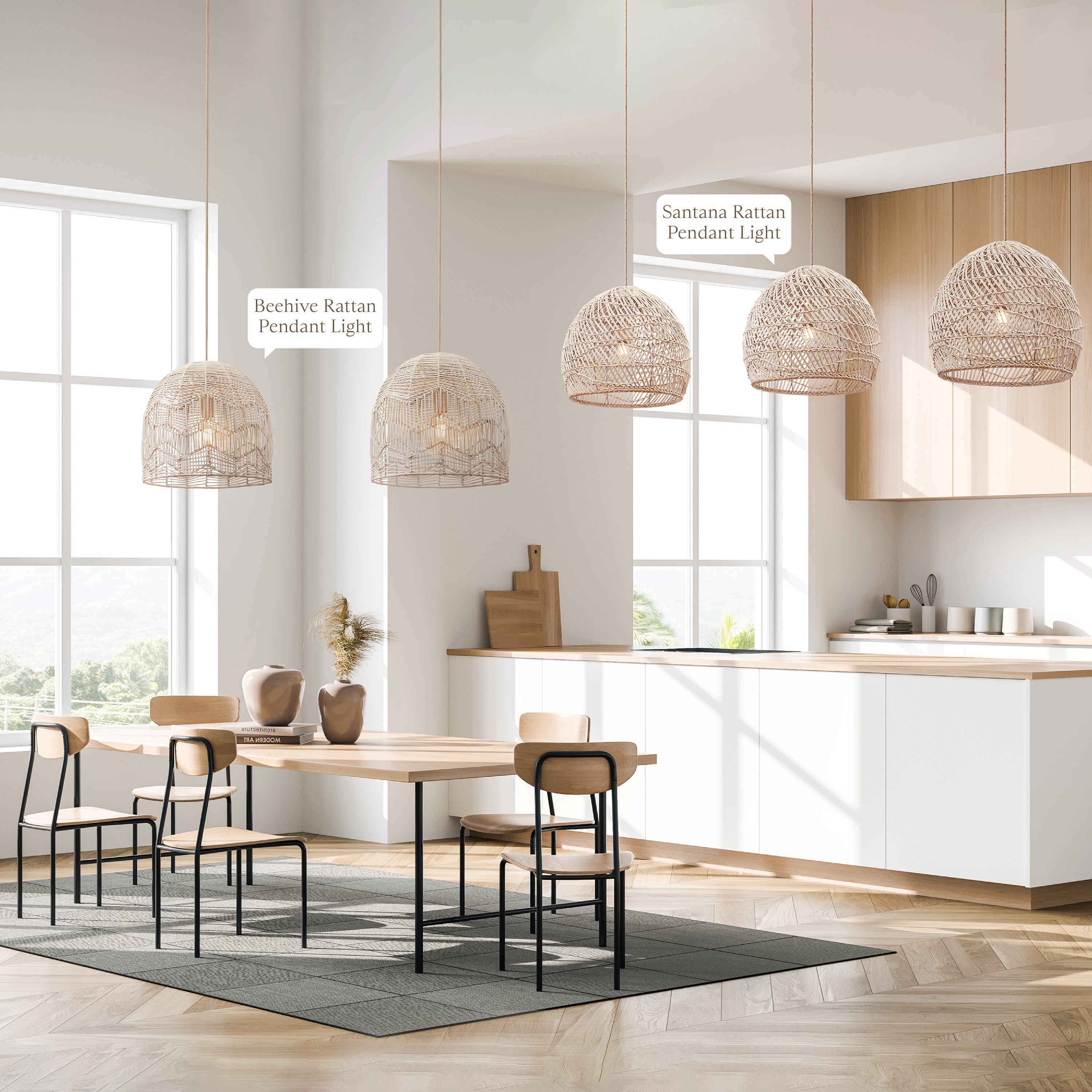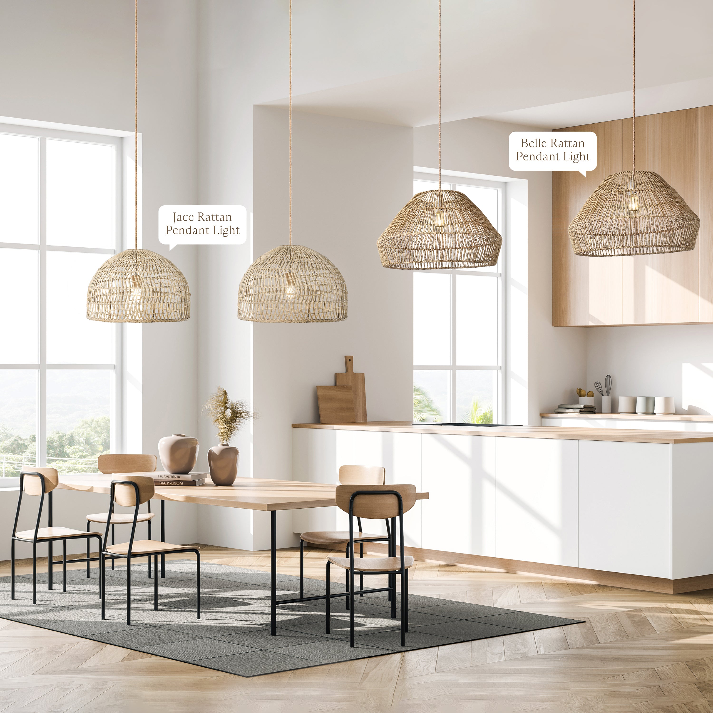 The Jace Rattan Pendant Light combines the timeless appeal of rattan with a sleek and clean aesthetic, creating a unique blend of natural warmth and modern sophistication. Its minimalistic design allows it to seamlessly integrate into various kitchen styles, whether you have a contemporary, Scandinavian, or even a minimalist design theme.