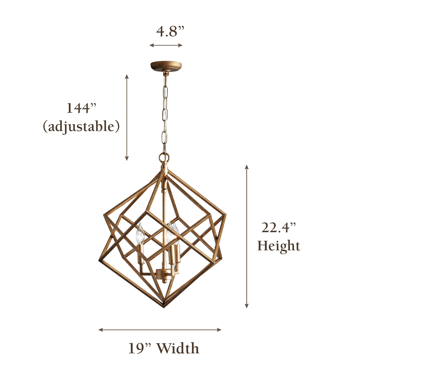The geometric cage design features candle-style bulbs, offering visual depth and inviting warmth, which enhances its appeal as a stylish lighting fixture.