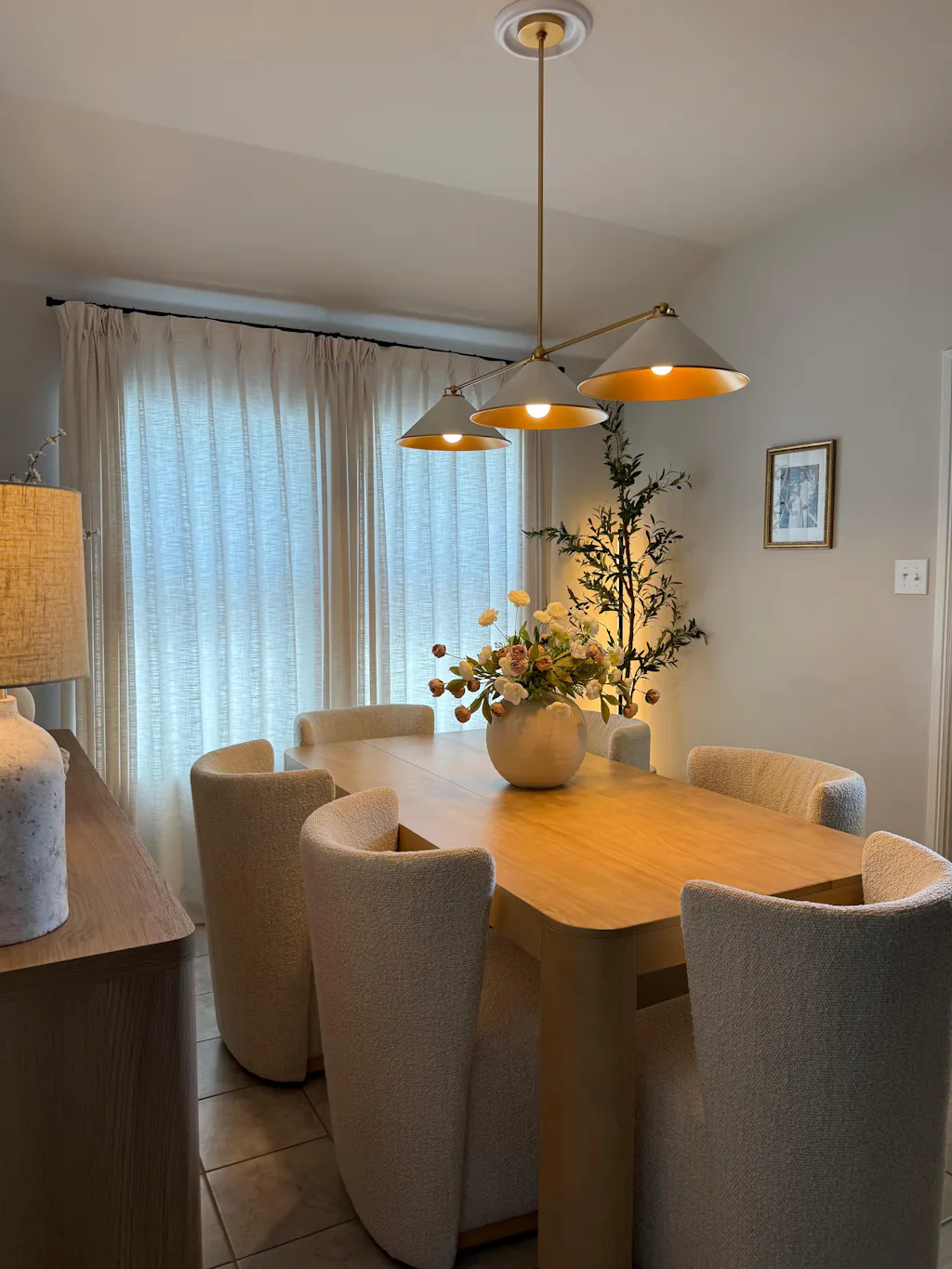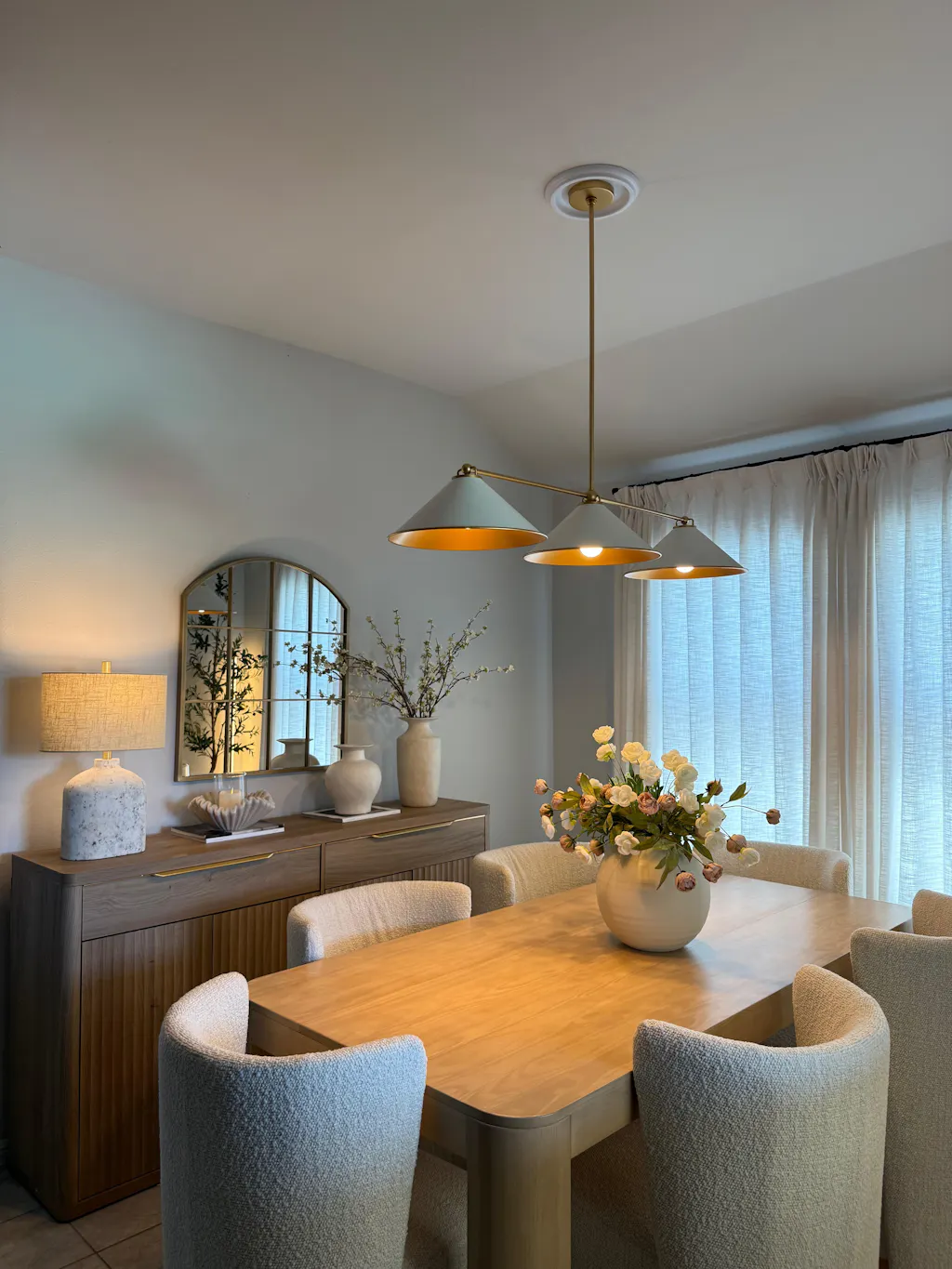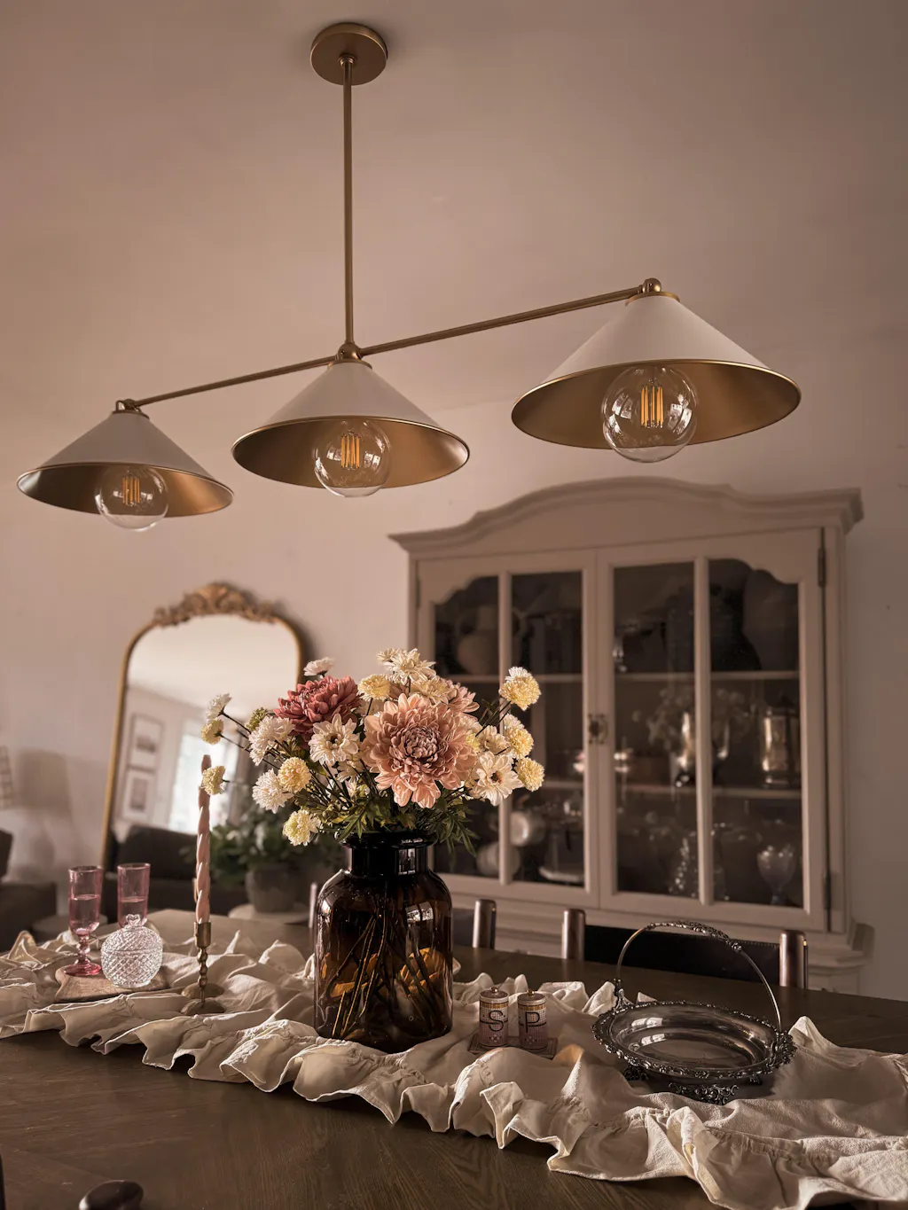 The Liora Three-Light Pendant embodies contemporary sophistication and modern elegance. Featuring a streamlined silhouette with three conical shades, this pendant light provides focused, practical illumination with a stylish flair.