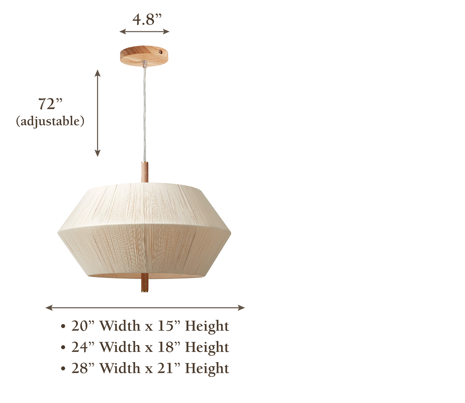 Crafted with care, this contemporary lighting fixture features a high-quality jute shade complemented by subtle wood and metal detailing.