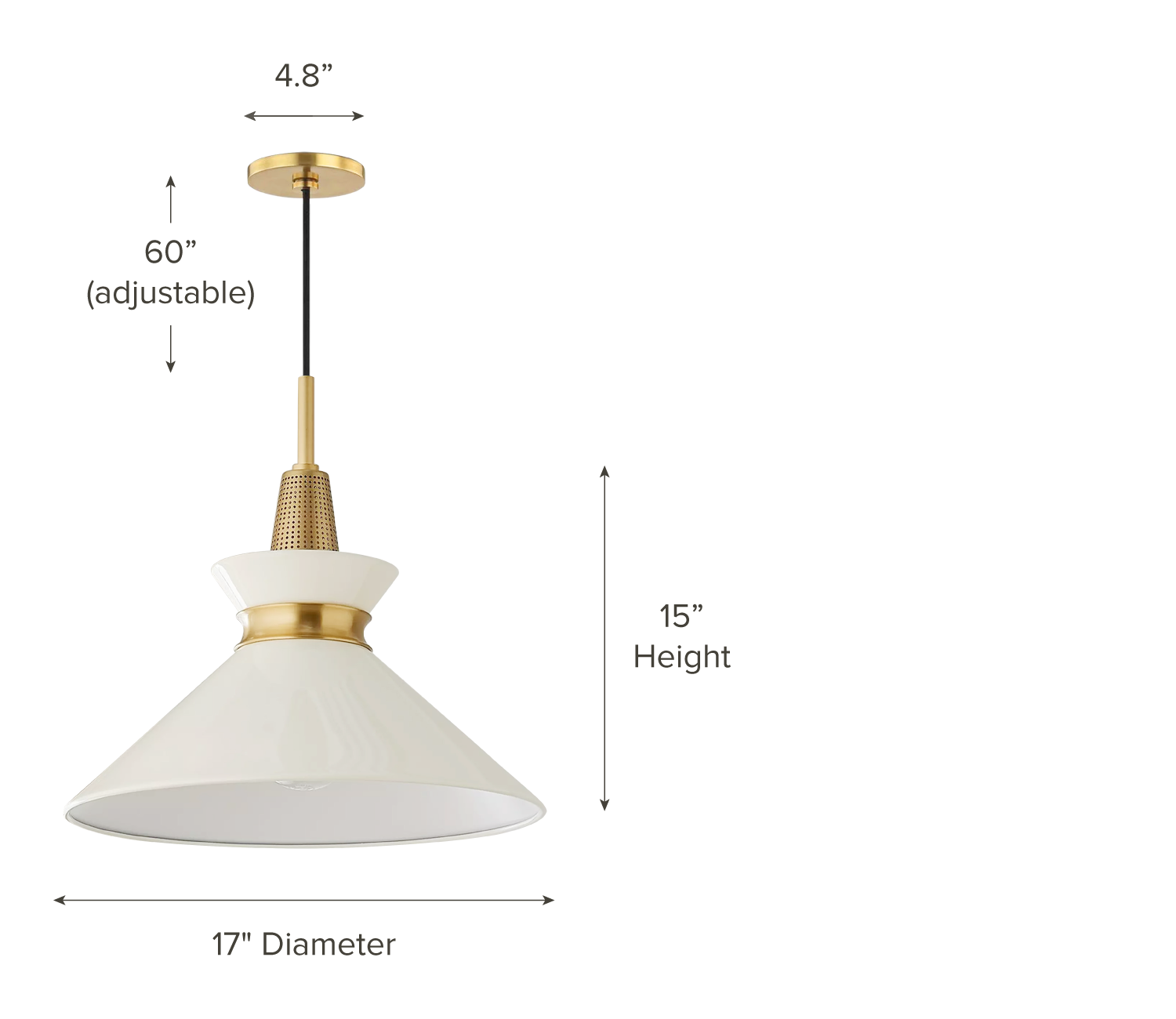 Featuring an elegant conical white shade paired with distinctive brass-like accents, this modern pendant seamlessly blends form and function. Its sleek profile and minimalist aesthetic add understated elegance, making it a striking focal point in any modern interior.